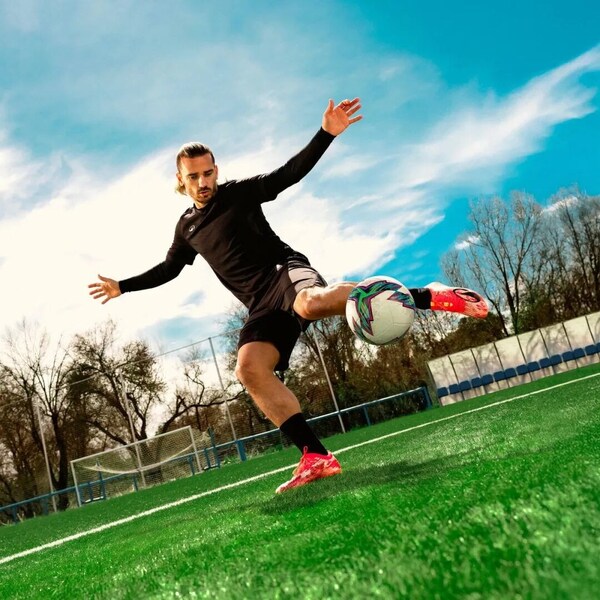 以迪卡侬与Alex Sarr合作的CANAVERAL 900联名款篮球鞋为例,其核心技术上完全对标顶级赛事需求:中底采用迪卡侬自主研发的VFOAM超临界发泡材料,兼具缓震与回弹,还有防侧翻支撑片和防滑大底,专业属性拉满;与Antoine Griezmann合作的成人短钉足球鞋,同样在速度、触球感与轻量化上达到专业赛事级别。曾经仅见于高端足球鞋的配置,如今以599.9元的定价呈现,让业余足球爱好者也能轻松拥有”球星同款”的专业体验。