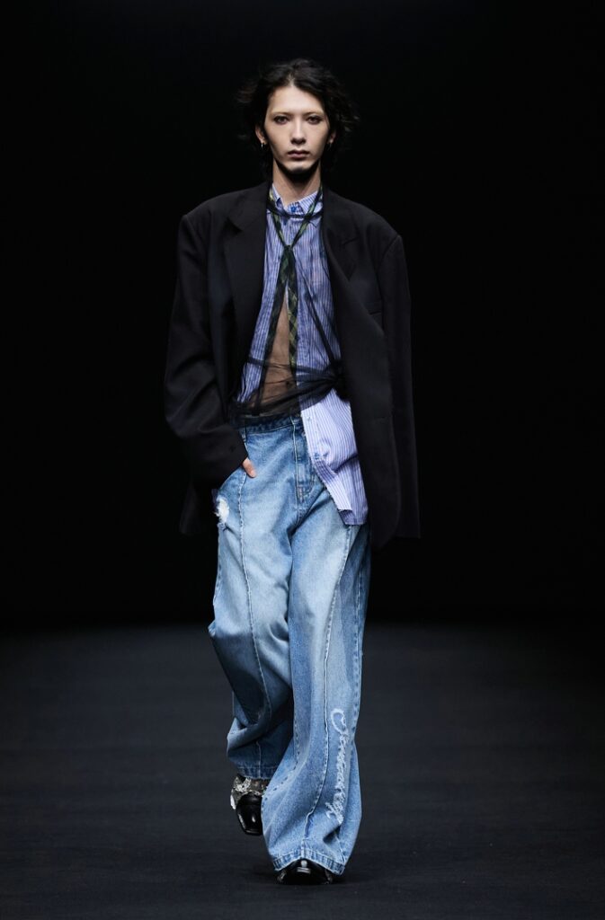 本系列作品以挺阔西装、做旧单宁、战损感卫衣及流光缎面,串联起从笃定启程到孤寂航行,从破碎重生到自由抵达的心路历程……全新系列覆盖通勤、度假、社交等多元场景,贯彻SENSEAWEEK“周循环哲学”的品牌理念,以“可穿戴的故事”传递坚韧与自由的生命张力。