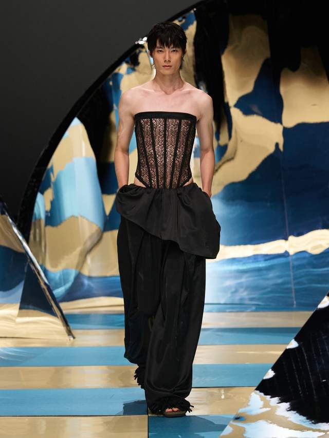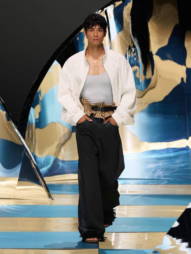 月相从不执着于圆满,而在于阴晴圆缺中展现的生命力。RuirUiruI本季借月相盈缺传递态度,以薄纱的柔韧呼应新月的可能性,用珠片的璀璨对应满月的丰盛,让解构的剪裁诉说残月的深邃。当模特行走于镜面之间,服装上的月相轨迹与地面倒影虚实交叠,仿佛在诉说:真正的风格从非定格于某一刻的完美,而是坦然拥抱每一次蜕变的过程——正如月相循环,藏在那永不停歇的变化之中。