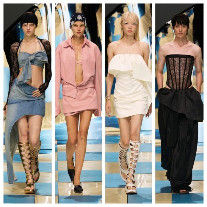 月相从不执着于圆满,而在于阴晴圆缺中展现的生命力。RuirUiruI本季借月相盈缺传递态度,以薄纱的柔韧呼应新月的可能性,用珠片的璀璨对应满月的丰盛,让解构的剪裁诉说残月的深邃。当模特行走于镜面之间,服装上的月相轨迹与地面倒影虚实交叠,仿佛在诉说:真正的风格从非定格于某一刻的完美,而是坦然拥抱每一次蜕变的过程——正如月相循环,藏在那永不停歇的变化之中。