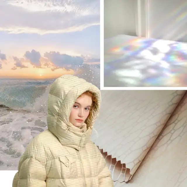 新曼丰聚焦气凝胶纤维、智能材料等前沿科技面料的全系列研发与应用,并将其深度融入差异化功能面料体系。通过创新性的多种纤维搭配、多重风格织造设计,结合生态环保高标准染色,并融入高科技后整理元素,打造具备独特风格与卓越性能的原创高端面料。