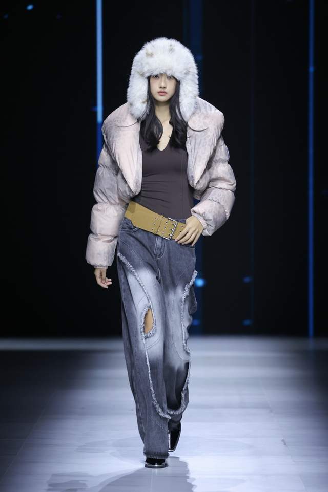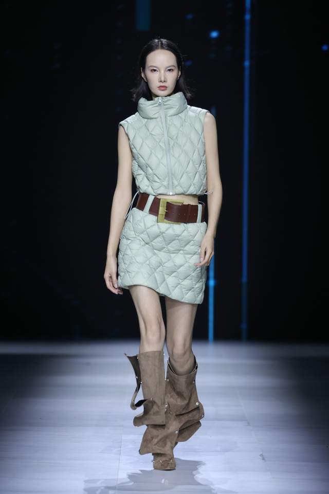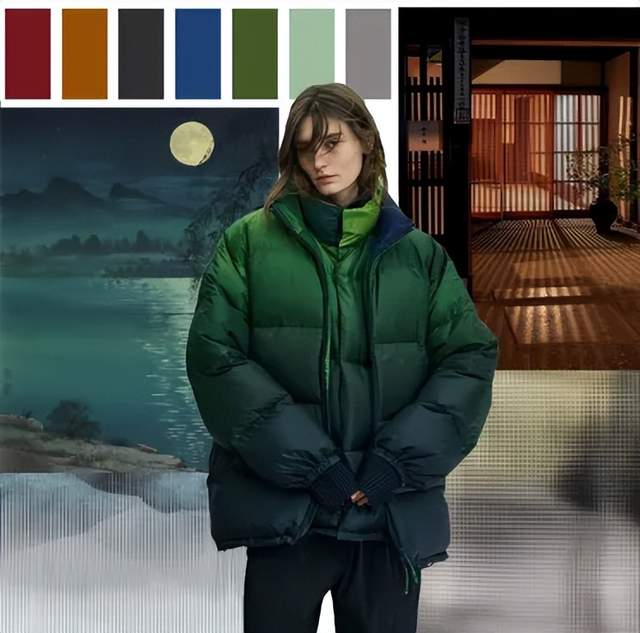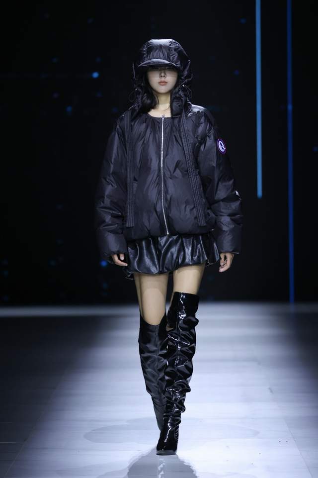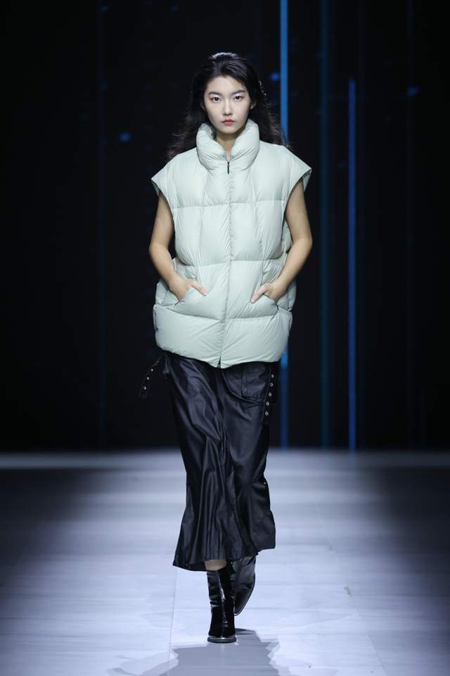 咖啡碳是大地馈赠的呼吸系统,气凝胶是星际旅行的保温密语。二者在细微竖条纹间交织,仿佛篆刻了经纬线的东方卷轴,亦如窗棂格栅在温暖烛光照射下的线性光影。轻盈与蓄热不再相悖,厚重羽绒服首次获得「空气感」生命。