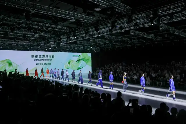 随后,现场举办了绸都盛泽风尚秀。今年,大赛特别邀请了在业内颇负盛誉的金顶奖设计师刘勇,担纲本次“绸都盛泽风尚秀”的服装设计。伴随着酷炫的舞美灯光,现场观众进入到了以“ECHOES OF SYNTHETICA纤生回响”为主题的时尚之境。