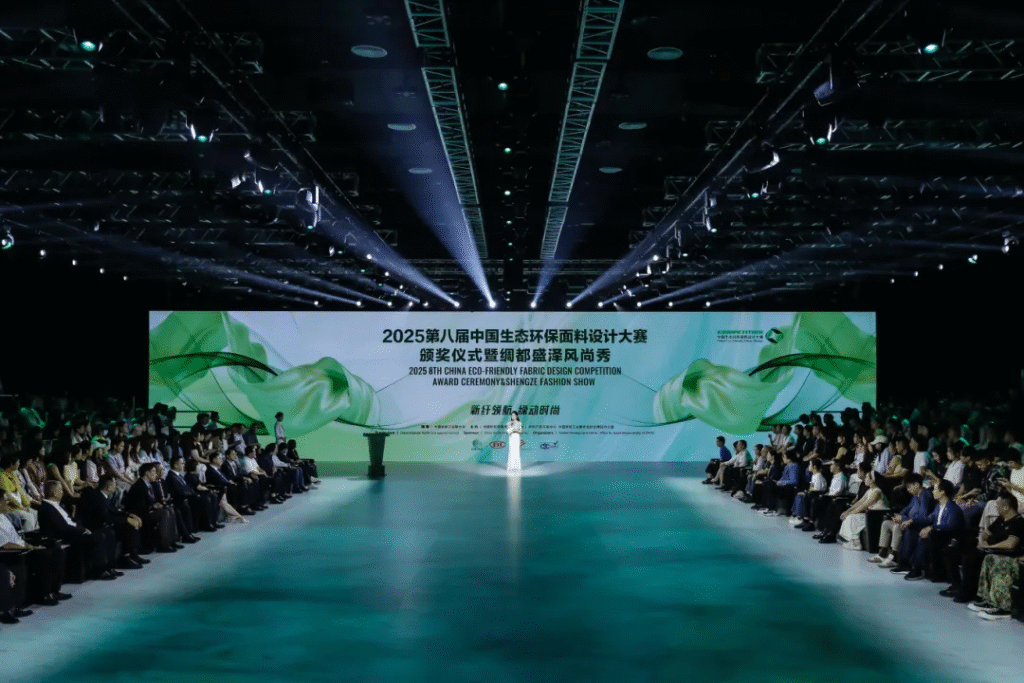 10月16日晚,2025第八届中国生态环保面料设计大赛颁奖仪式暨绸都盛泽风尚秀在盛泽东纺城举行,共览生态环保面料的多元开发成果,见证产业绿色创新的新生活力。