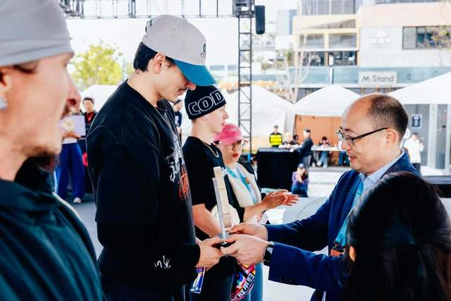 (龙头股份董事长党委书记 倪国华先生 为2025 FISE国际霹雳舞争霸赛冠军得主颁奖)