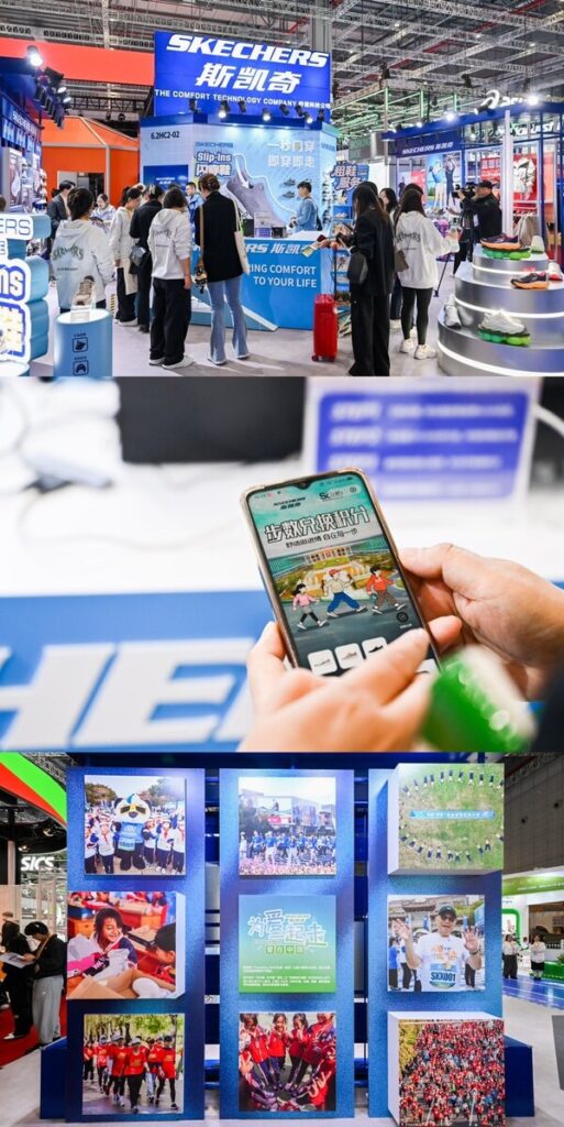 值得一提的是,斯凯奇在本届进博会打造了集互动体验与公益实践于一体的沉浸式展台,通过多元方式与消费者深度链接。参展观众不仅可通过”租鞋”服务亲身感受舒适科技的加持,还能现场注册成为斯凯奇会员,参与步数兑换积分活动,成功兑换即可领取精美礼品。展台特别设置的公益展区同步呈现了”以旧换新”环保项目与”斯凯奇FRIENDSHIP WALK为爱一起走”公益健步行的阶段性成果,展现品牌深耕中国市场、践行社会责任的长期承诺。