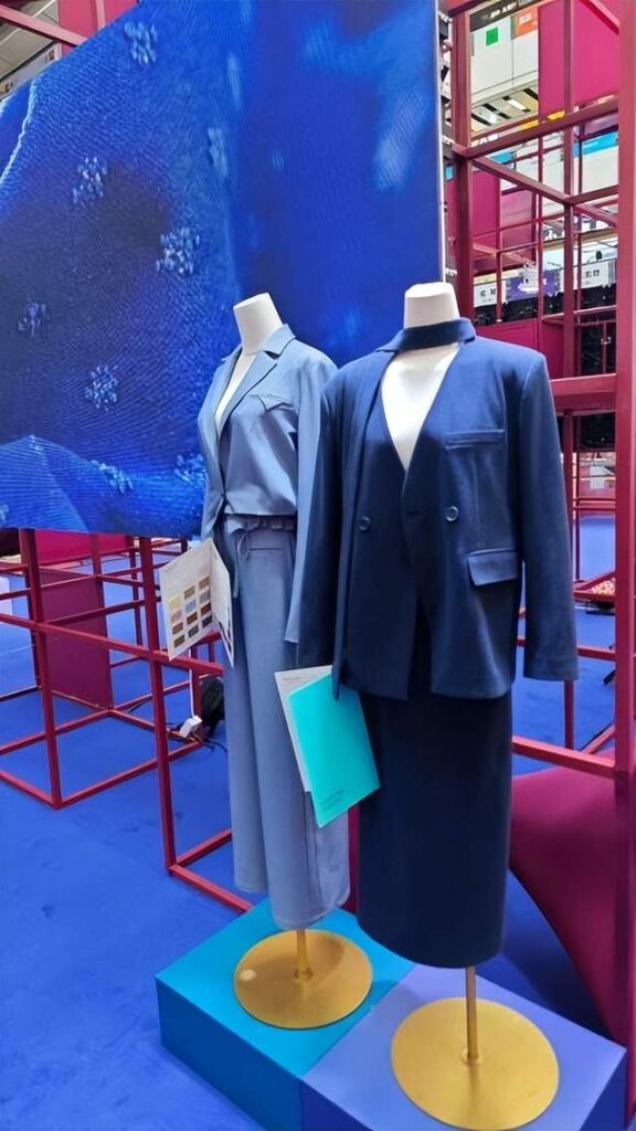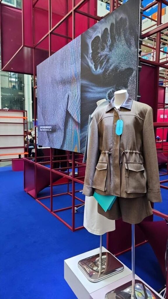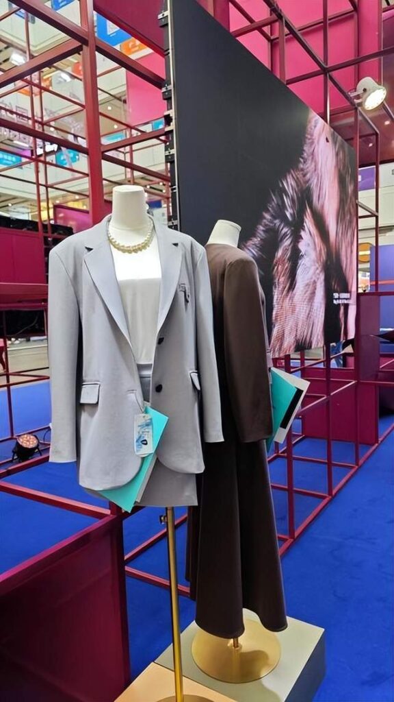 其中,俪森提供的8款成衣作品成为展区焦点。成衣覆盖休闲、商务、户外等多元终端应用,展现了面辅料创新的落地成果,充分诠释了商户对市场需求的精准把握能力。
