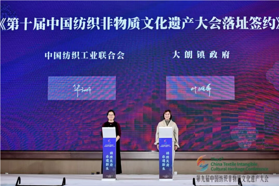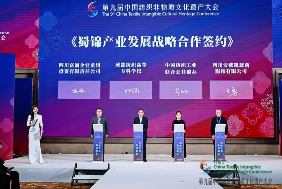 伴随着华灯初上,11月20日晚,第九届中国纺织非物质文化遗产大会启动仪式隆重举办。本届大会由中国纺织工业联合会主办,中国纺联非遗办与成都纺织高等专科学校承办,以“锦绣天府·非遗新生”为主题,汇聚行业精英、非遗传承人、高校学者与设计师等领军人物,深入探讨“非遗+教育+产业”的融合路径,激活青年一代的创造力,共议纺织非遗在当代语境下的传承路径与产业未来。