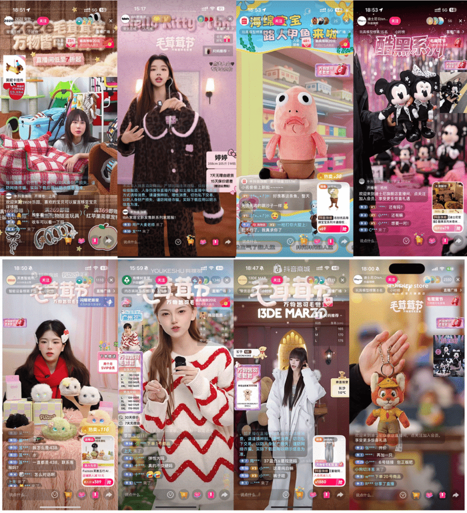 契合这一内容与消费热点,抖音商城打造行业首个“毛茸茸”主题活动——「抖音商城毛茸茸节」,11.20-11.30全网首次聚焦“毛茸茸”概念大胆“造节”,以“电子布洛芬”的情感共鸣撬动消费新蓝海。活动凭借强治愈感的#万物皆可毛茸茸 AI特效引发全网互动投稿,截止11月26日毛茸茸累计商达投稿突破100万,相关内容播放量突破20亿。伴随内容热度聚势成潮,50余场直播间借毛茸茸热点抢滩“可爱经济”,让内容热度高效转化为实打实的生意增量。