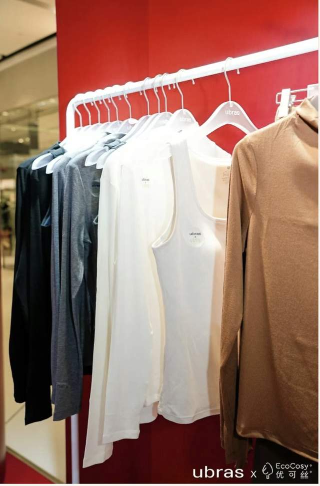 ubras与赛得利优可丝®合作推出的“羽绒化”肌底衣成为本次快闪的全场焦点。该系列采用纱线羽绒化黑科技,使纱线在气流中蓬松舒展,形成轻盈却高锁温的“羽绒层”,实现更薄、更暖的升级效果。搭配奶酪绒磨毛工艺,触感柔软细腻如“婴儿肌”。优可丝®天然吸湿且不易产生静电,让冬日穿着更顺滑舒适。轻薄贴肤的结构更适合长时间穿着,从早到晚都能保持柔软无压的舒适体验。