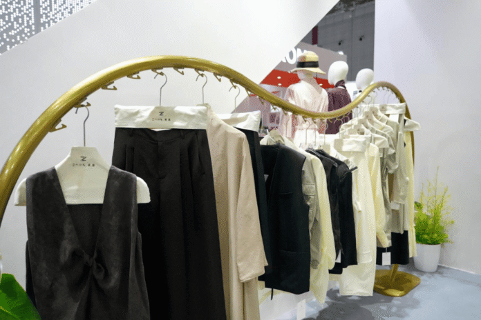 蓁蓁纺织的“蓁蓁”二字取自诗经中的《周南·桃夭》里的“桃之夭夭,其叶蓁蓁”,寓意着如桃叶般繁茂旺盛、生生不息的生命力。这一意象既象征着品牌对创新与可持续发展的追求,也寄托了其对当代女性的美好祝愿。正如王跃江所言:“我们希望女性如春日桃叶,展现自信蓬勃的生命风采。”品牌将这份生机与美感融入高端女装面料的塑造中,通过对面料肌理、功能的持续创新与对品质的严格把控,致力于为消费者提供在触感、视觉与穿着体验上均臻于卓越的产品。