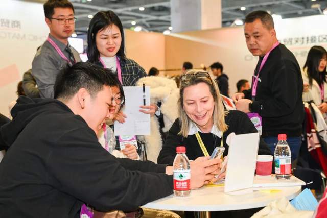 开展第一天,很多展位上的企业资料瞬间发完,从公司本部加急寄送资料册。有的大展位四张洽谈桌从早到晚没空过,几个工作人员轮番接待访客根本顾不上吃饭,有的招待一拨又一拨的新老朋友,有的忙着通过微信好友申请。“观众太热情了,只能从公司紧急申请加派同事来支援了。”一位男装品牌展商负责人笑着说。
