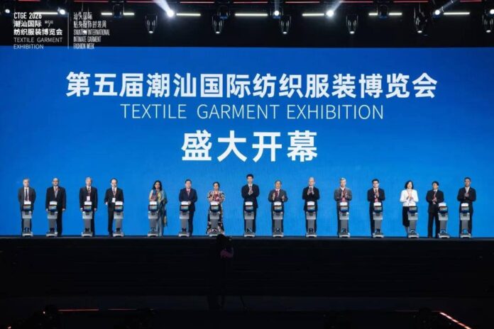 3月18日上午,第五届潮汕国际纺织服装博览会(CTGE)盛大开幕。本届潮汕服博会以”五洲共潮”为核心主题,在展览规模、产业联动能级、商业模式创新等实现全方位跃升,作为2026年中国纺织服装行业开年第一重磅行业盛会,为汕头加快建设具有全球影响力的”世界级纺织服装产业基地”注入澎湃动能。